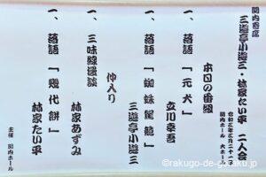 小遊三師匠、たい平師匠の二人会、さすが、笑点コンビのお二人、ソーシャル・スタンディングながら、この時期でも、はぼ満席でした。小遊三師匠の蜘蛛駕籠、面白かったです。マクラが長かったので、今日は落語は演らないのかななんて、想像していましたがトンデモナイ、しっかり演じてもらいました。たい平師匠の幾世餅、初めてかも知れません。少し驚きました。幾世餅、演じられるとは。