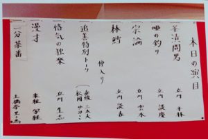 談志まつり、初めての経験でした。談春師匠の棒鱈、生志師匠の悋気の独楽、聴き応えありました。生志師匠、悋気の独楽、良かったです。丁稚の定吉の変わり身、言葉遣いで、表情が想像できて、目の前で定吉を見ているようでした。有り難うございました。