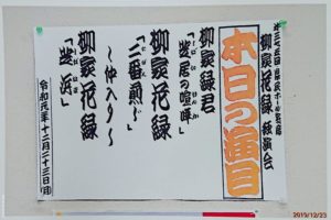 花緑師匠の独演会、初めてかな?やはり、個性の強い噺家さんですね。二番煎じは、色々聴かせて頂いておりますが、花緑師匠の色でした。芝浜、じっくり聴かせていただきました。終わりの方で、勝っつあんが、女将さんを怒る場面は、師匠のお顔、怖かったです。