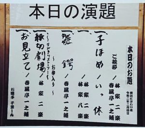 ”御注文に応じます!”企画の三席拓一?の、笠碁、お見立て、三方一両損、場内拍手の結果、お見立てに決まりました。個人的には、一之輔師匠の笠碁が、聴きたかったのですが、お見立て、師匠流のいじくりも有り、コヨリを使っての涙とか、私にとって、新しい、お見立てでした。