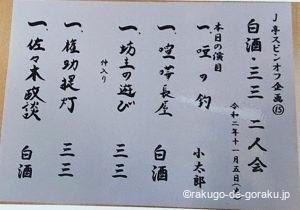 坊主の遊び、三三師匠のを、1回だけ聴いたことも有りかな、このお噺も余り演らないですね。三三師匠ならではかな。流石です。白酒師匠の佐々木政談、良かったです。桶屋の四郎吉の生意気ぶり、白酒師匠そのものという演じ方という感じでした。