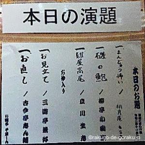 そうそうたるメンバーの落語会でした。久しぶりの志ん輔師匠の、お直し、良かったです。若い衆のヤキモチの焼き方、とても真に迫っていました。また、聴きたいなと思わせてくれました。