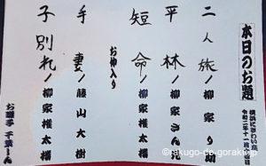 最近、権太楼師匠の落語、ハマっています。子別れは、先月も聴きましたが、亀ちゃんのしぐさ、言葉使い、好きです。り助さん、先回は、子ほめでしたが、二人旅も上手いです。