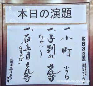 さん喬師匠の独演会は、本当にいつも、たっぷりなので、9時半終演です。私たちにとっては、嬉しいことです!!。特に今日の、子別れの通し、1時間の長講で、素晴らしかったです。熊さん、おかみさん、亀ぼう、番頭さん、もう何人もの役者さんが、目の前にという感じでした。お一人で、感激でした。百年目も、番頭さんの演技も、真面目から遊び人への豹変、そして、旦那さんとのやりとり、たっぷりでした。そして、演目までさん喬師匠の自筆、加えて、なすかぼまで、踊っていただき、最高の独演会でした。