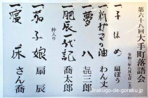 大手町落語会、いつも長老クラスの噺家さんたちが演じてくれますが、今回は、さん喬師匠、扇辰師匠でした。さん喬師匠の寝床、オチは定吉の旦那はんが今座っているところが、私の寝床まで、いかずに、終わりました。分かりません。扇辰師匠の、茄子娘、粘っこくて、あっさりしていて、親は無くても、子は育つ。良かったです。喬太郎師匠の肥辰一代記、初めて聴きました。江戸の汚穢屋(おわいや)さんのお噺で、ウン、ウン、ウンの連続でしたが、それを喬太郎師匠が、しつこそうでしつこく無く、後味もスッキリでした。また聴きたくなる一席でした。㐂三郎師匠の夢八、㐂三郎師匠演じられるのは初めてでした。もっともっと怖くても良かったかなとも、感じました。
