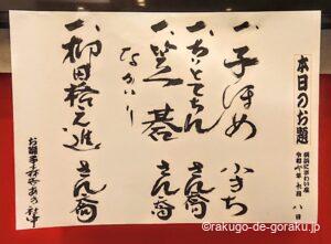 演目表、さん喬師匠の自筆だそうです。達筆ですね。