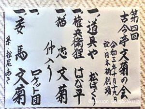 文菊師匠、やはり持ち前の”品”が有りますね。間違い無く!!。猫忠、良い聴き応えの有るお噺ですね。文菊師匠しか聴いたこと有りません。でもまだ、二回目ですが、又、聴きたいお噺です。はな平さんの権兵衛狸、面白かったですよ。松ぼっくりさん、ガンバです。
